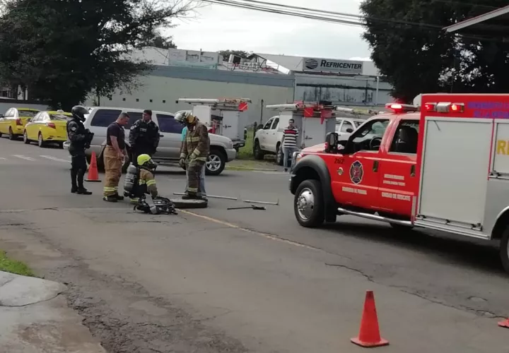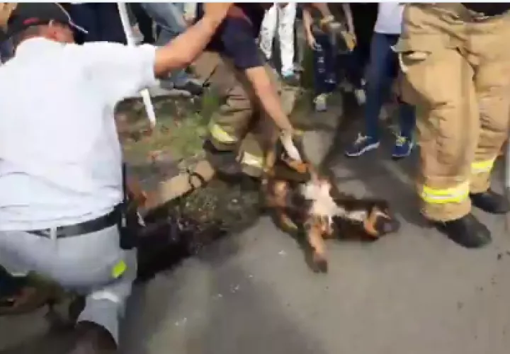 Unidades del Cuerpo de Bomberos de David, provincia de Chiriquí, rescataron hoy a un perrito que cayó a una alcantarilla sin tapa, localizada entre las avenidas 9 de Enero y B Sur.