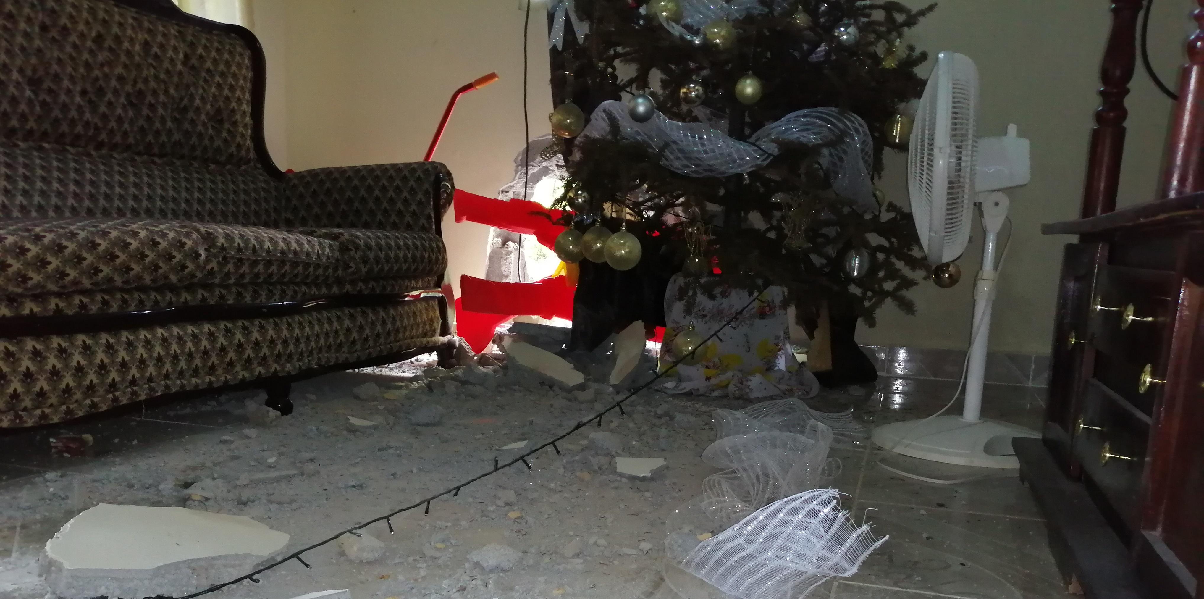 Según los dueños de la casa, la roca fue desviada por el tronco de un árbol, lo cual evitó que impactará contra la habitación en donde se encontraban tres personas durmiendo.