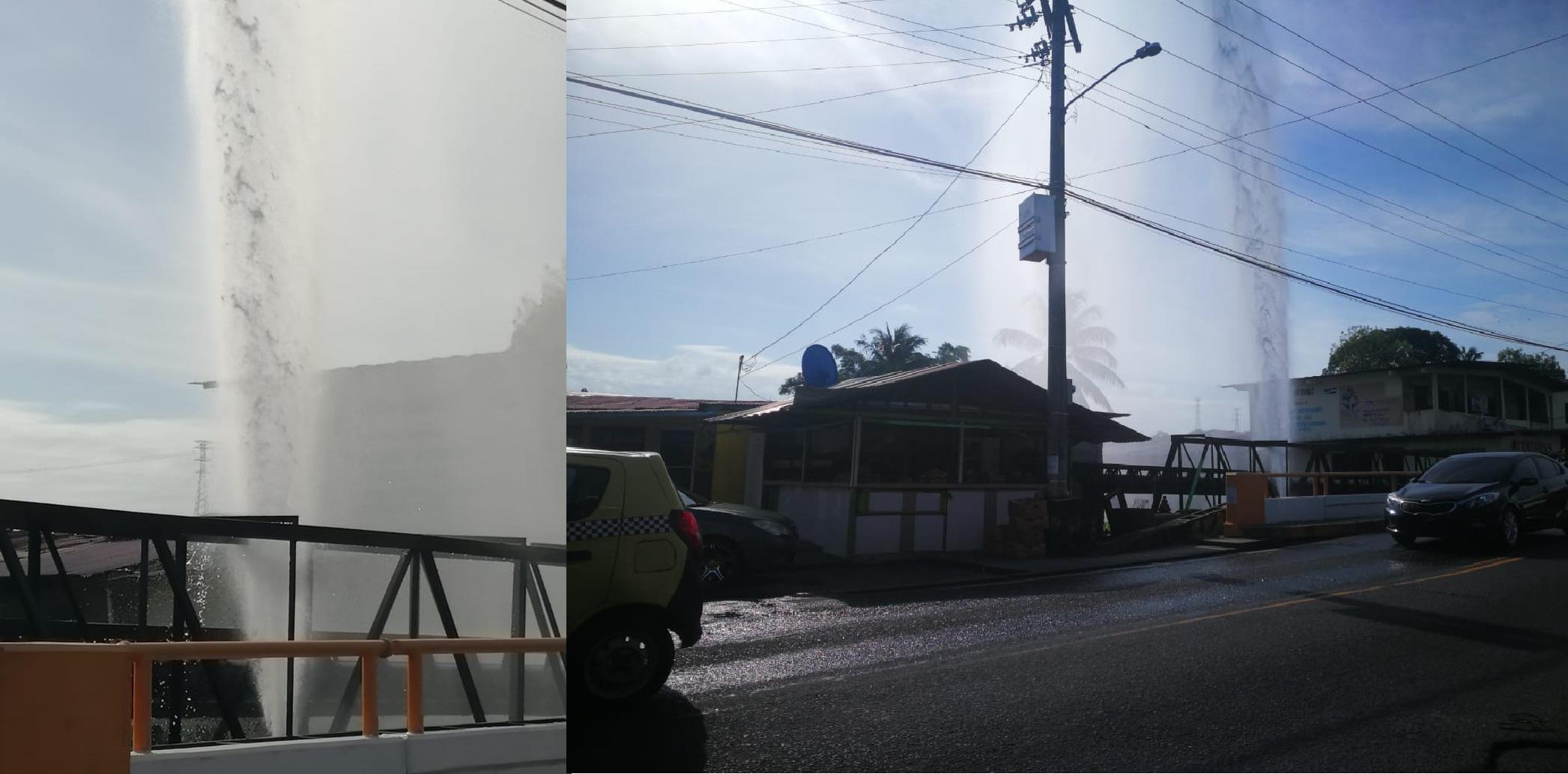 Una tuberia que dota de agua a gran parte del corregimiento de Sabanitas en Colón, se rompió esta mañana, en los predios del Residencial Irving Saladino.