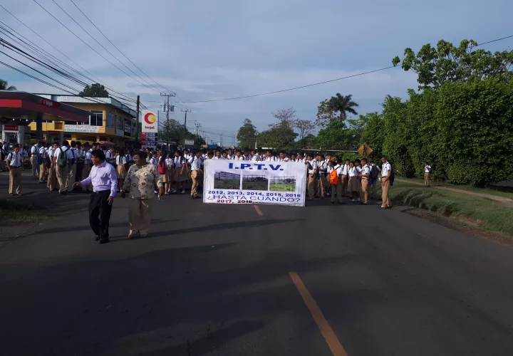 Panamá- Estudiantes, profesores y algunos padres de familia del Instituto Profesional y Técnico (IPT) de Veraguas realizaron una protesta en horas de la mañana de este martes, cerrando los cuatro paños de la calle décima de Santiago, frente a las instalaciones del plantel.