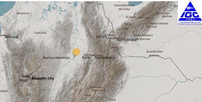El Instituto de Geociencias de la Universidad de Panamá, según datos preliminares, se  registró un temblor de magnitud 6.4 ,profundidad 77 KM al Noroeste de Colombia en horas de la madrugada de hoy.