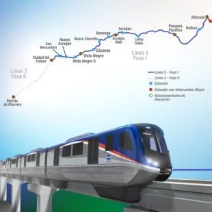 La Línea 3 partirá de la Estación de Albrook y recorrerá Arraiján, Nuevo Chorrillo y llegará a Ciudad del Futuro. Tendrá un recorrido en su primera fase de 24.5 kilómetros, a lo largo del cual se distribuirán 14 estaciones.