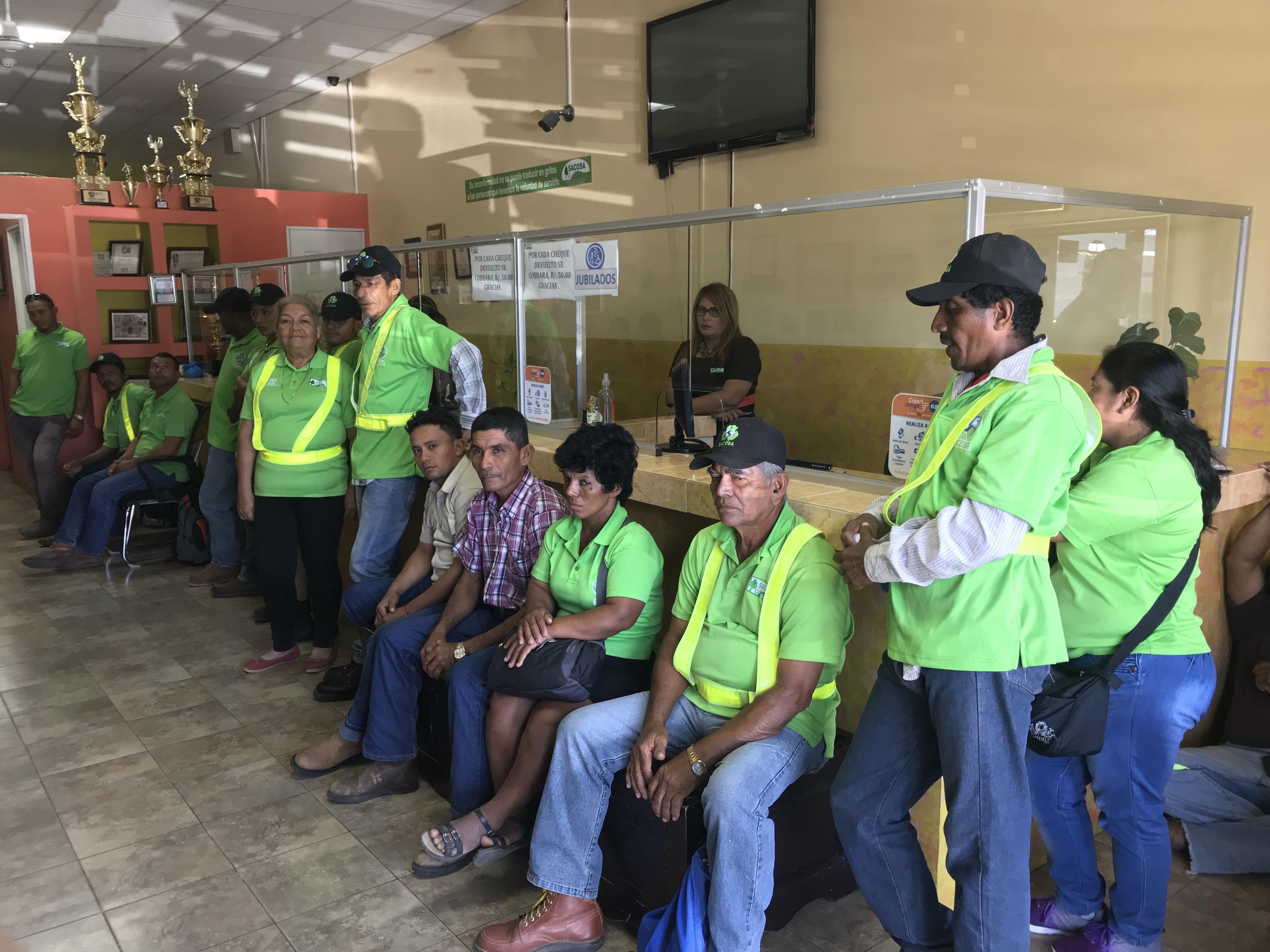 Los obreros, en su mayoría operadores de camiones compactadores, recolectores y hormiguitas dedicadas al barrido de las calles de la localidad, se mantienen concentrados dentro de las oficinas administrativas de la empresa.