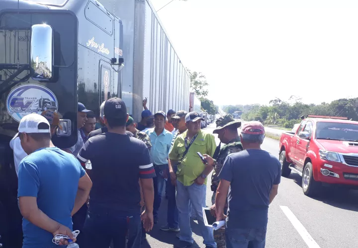 Manuel Levigión , dirigente de los transportistas de carga, aseguró que la medida de presión se realiza unos metros antes del puesto de control de Servicio Nacional de Fronteras, ubicado en San Isidro, a unos metros de Paso Canoas.