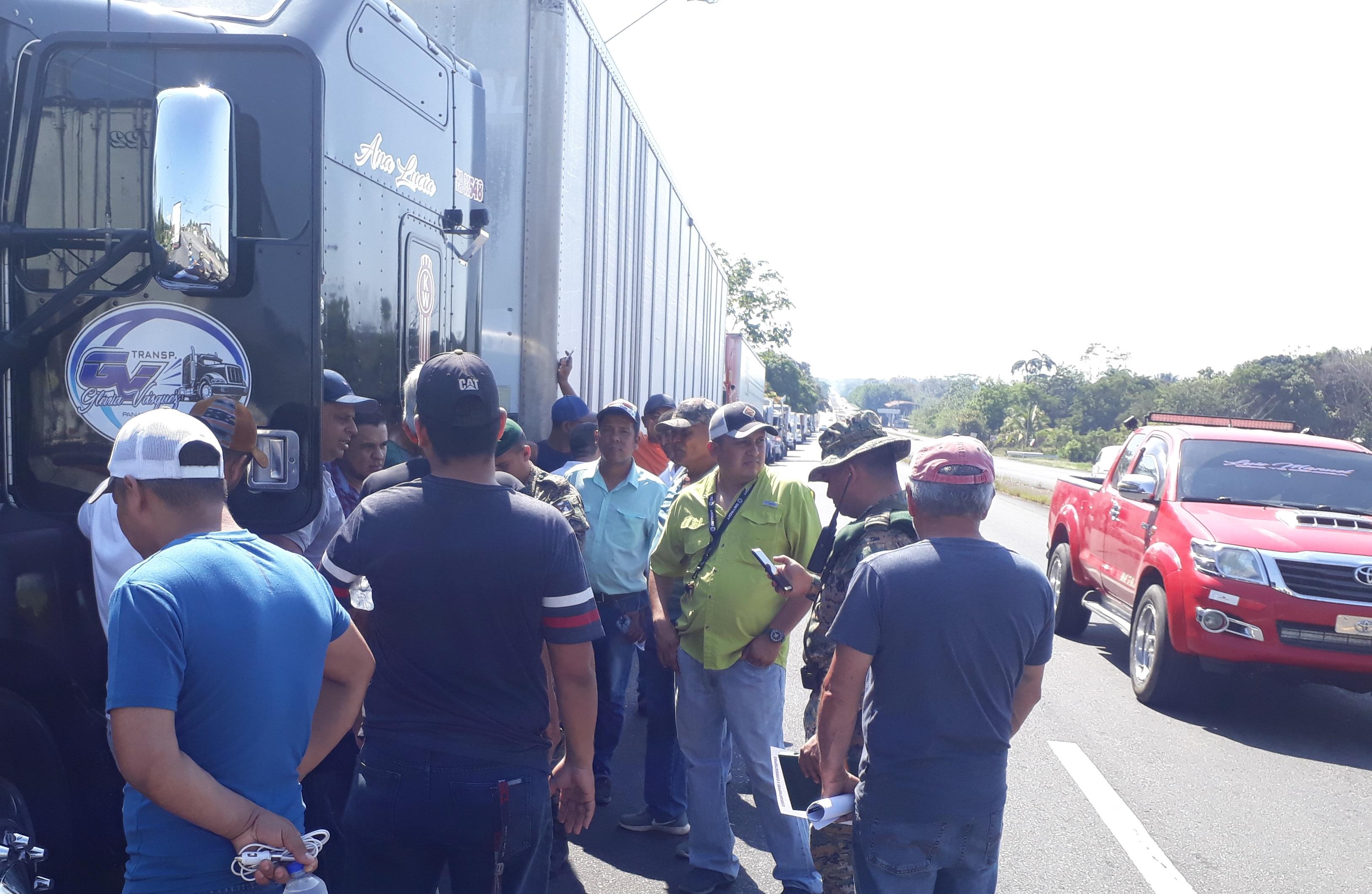 Manuel Levigión , dirigente de los transportistas de carga, aseguró que la medida de presión se realiza unos metros antes del puesto de control de Servicio Nacional de Fronteras, ubicado en San Isidro, a unos metros de Paso Canoas.