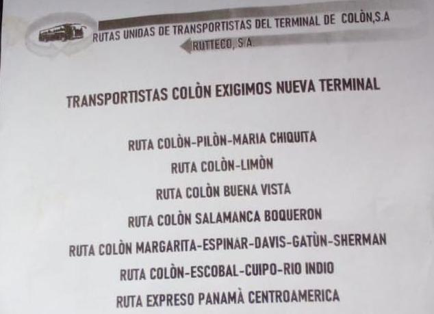 La agrupación de Rutas Unidas de Transportistas de Colón, que aglutinan más de 8 rutas internas, han anunciado un paro para el próximo 27 de octubre.