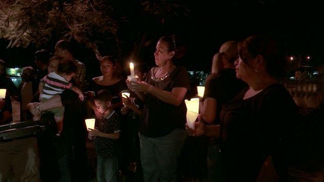 Portando velas y vestidos de negro, los miembros de este grupo de protección de los animales permanecieron por una hora en un parque contiguo a la escuela.