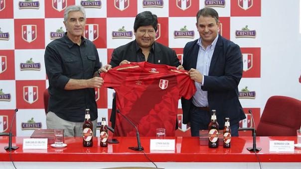 Solo unos pequeños detalles dorados en el cuello y en los hombros evitan que el rojo abarque toda la pieza, presentada hoy en Lima por el presidente de la Federación Peruana de Fútbol (FPF), Edwin Oviedo, su director deportivo, Juan Carlos Oblitas, y el director de mercadotecnia de la cerveza Cristal, Bernardo León.