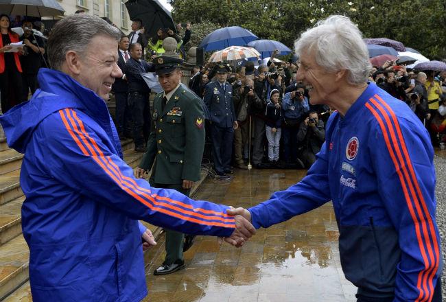 "Si usted me lo permite le entregaré la máxima distinción que puede recibir una persona en el país: la Cruz de Boyacá", expresó Santos. "Profesor Pekerman, los colombianos no tenemos cómo agradecerle lo que usted ha hecho por la selección y lo que la selección ha hecho por Colombia".