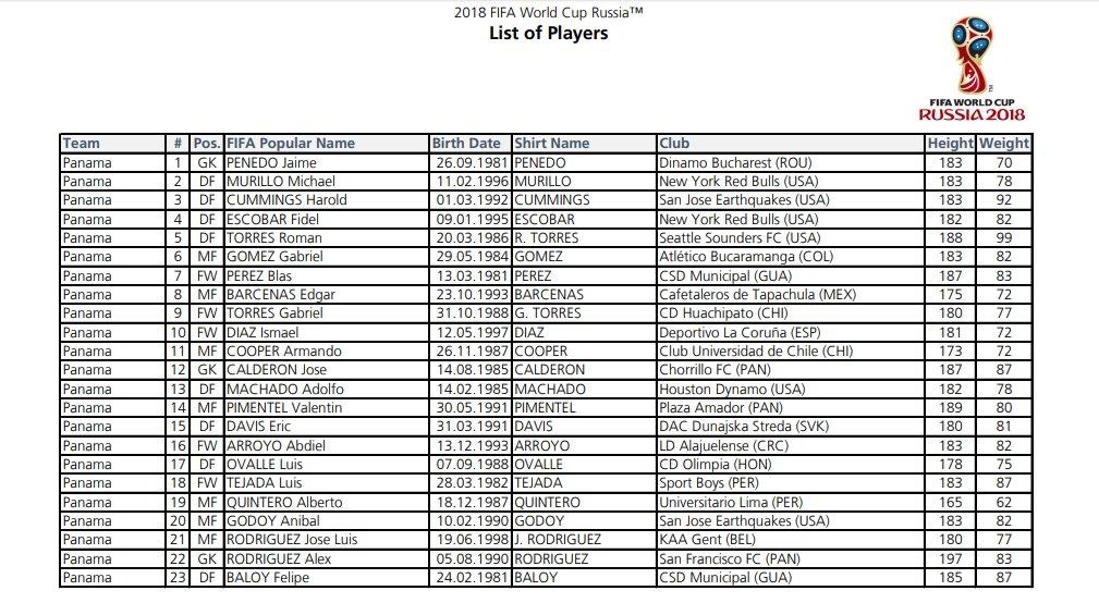 Los jugadores de la Selección Mayor de Fútbol de Panamá ya conocen el número que llevarán en sus dorsales para el Mundial de Rusia 2018.
