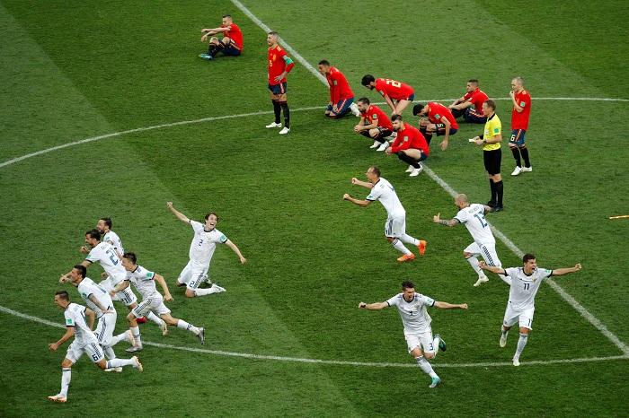 En la tanda de penaltis marcaron por España Andrés Iniesta, Piqué y Sergio Ramos, pero fallaron Koke Resurrección e Iago Aspas. Por Rusia marcaron todos los que tiraron, Smolov, Ignashevich, Golovin y Cherishev.