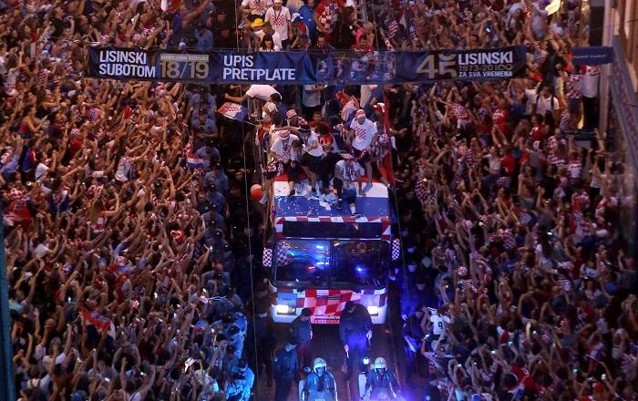 Durante varios horas, a baja velocidad, el vehículo recorrió los 20 kilómetros desde el aeropuerto de Zagreb hasta la céntrica plaza Ban Jelacic, donde decenas de miles de personas esperaban a los jugadores para un gran festejo.