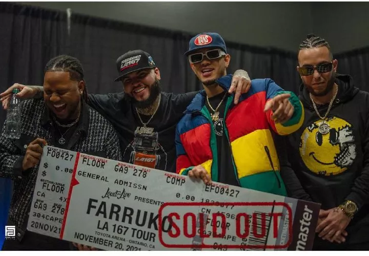 La primera parada fue San Diego, California, y el panameño subió a la tarima a interpretar algunos de sus éxitos. “Señor pongo en tus manos todos mis proyectos y que se haga tu voluntad, gracias por darme vida y salud!!! Del resto nos encargamos nosotros ‘tamo activo pa’l tour del bro @farruko #la167tour nos vemos en SAN DIEGO!!! Dime @frankmiamiofficial esto es @carbonfibermusicinc”, expresaba el colonense en las instantáneas que dejó en su cuenta de Instagram, en las que se le ve sentado en las escalera del avión que los lleva en el tour.