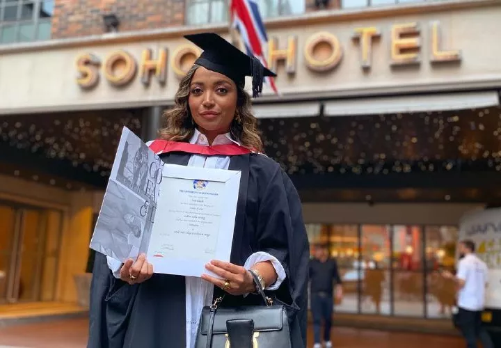 La expresentadora panameña Alexa Chacón expresó su felicidad tras culminar sus estudios de maestría y graduarse en Londres, Inglaterra.