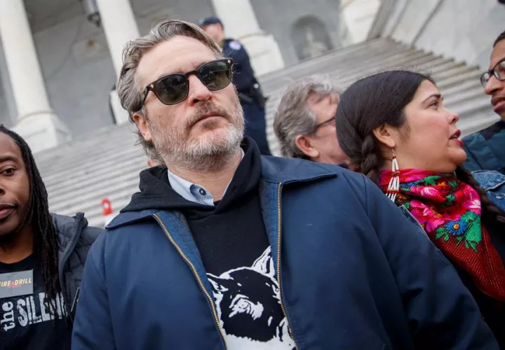 En esta manifestación frente al Capitolio, el recientemente galardonado con un Globo de Oro por su papel en "Joker" invitó a los presentes a dejar de comer carne como parte de su lucha contra esta crisis: "Os insto a uniros a mi, a ti también, Jane", dijo el actor.