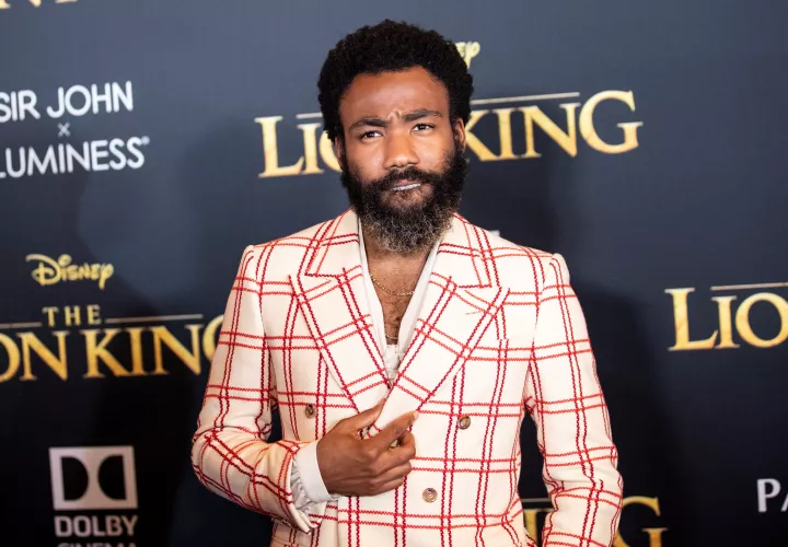 Al margen de Beyoncé, otro de los grandes protagonistas de la "premiere" fue el actor y cantante Donald Glover, que se ha encargado de doblar a Simba y que hoy se presentó en Los Ángeles con un traje claro de Gucci con cuadros rojos y la camisa abierta.