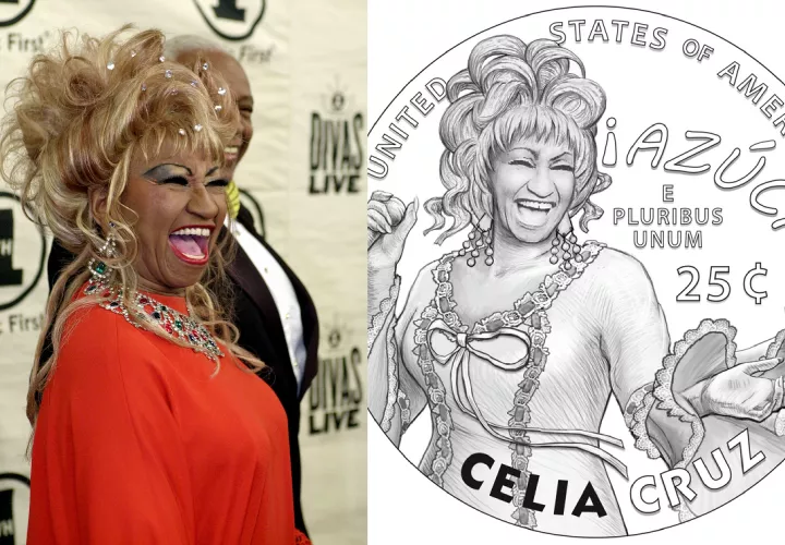 La famosa cantante cubana Celia Cruz, de cuya muerte se cumplieron 20 años el pasado 16 de julio, y su popular exclamación "¡Azúcar!" aparecen en una moneda de 25 centavos de dólar cuyo diseño se acaba de dar a conocer, aunque no entrará en circulación hasta 2024.
