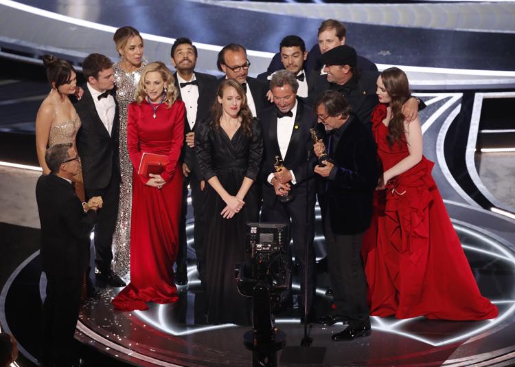 "Queremos dar las gracias a la Academia por dar el premio a una película sobre la familia y el amor", dijeron sus directores y productores al recoger el galardón en grupo.