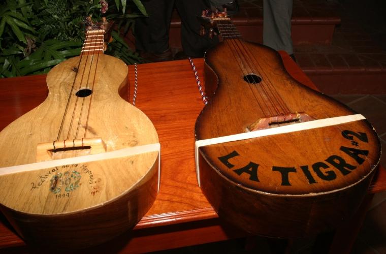 Este instrumento de cinco cuerdas y de cinco trastes, aunque la tradición admite hasta siete, divididos con hilo, es originario de los pueblos campesinos de la región central del país, y es fabricado artesanalmente usando tres tipos distintos de madera, según sea para la caja de resonancia, la tapa o las clavijas. Tiene un patrón propio para su “encuerdado” y para su afinamiento. Se toca mediante rasgueos y un sistema propio de tapes para resaltar las notas melódicas. El conjunto de elementos que la integran le dan un timbre y una sonoridad inconfundible.