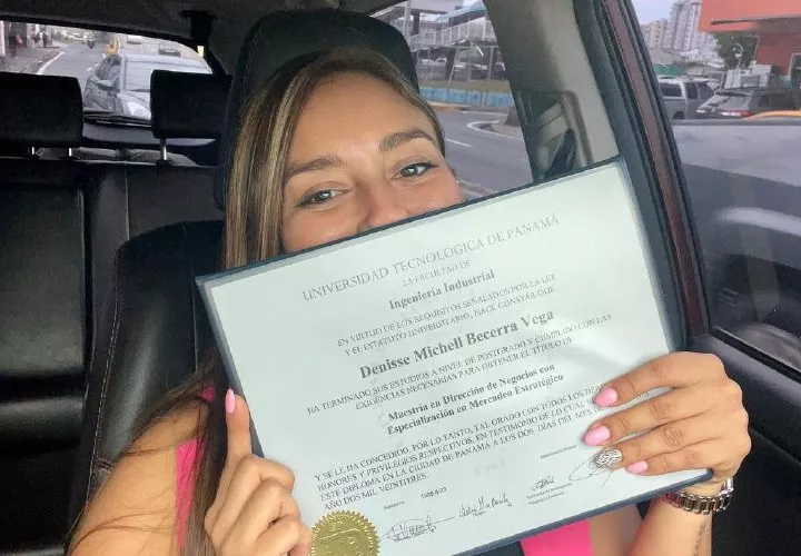 La presentadora y exparticipante de Calle 7, Denisse Becerra, está que salta de un pie, pues recibió su título de maestría en Dirección de Negocios con especialización en Mercadeo Estratégico.