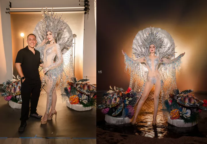La pieza, titulada “Los Roques, donde los corales se vuelven corona”, rinde homenaje a la riqueza natural del archipiélago Los Roques, uno de los tesoros marinos más emblemáticos de Venezuela. Pérez no solo diseñó y confeccionó el traje en Panamá, sino que además viajó personalmente a Tailandia para realizar los ajustes finales, preparar a la candidata y garantizar un resultado impecable en la pasarela internacional.