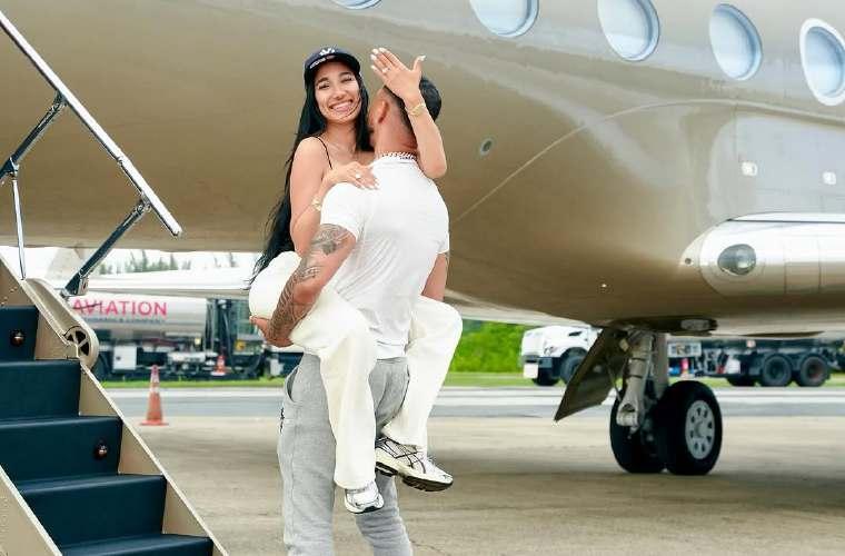 Adoni sorprendió a su pareja antes de abordar un avión, al arrodillarse y mostrarle la cajita del anillo. Muy emocionada, Lisabely no dudó en darle el sí al padre de su hijo.