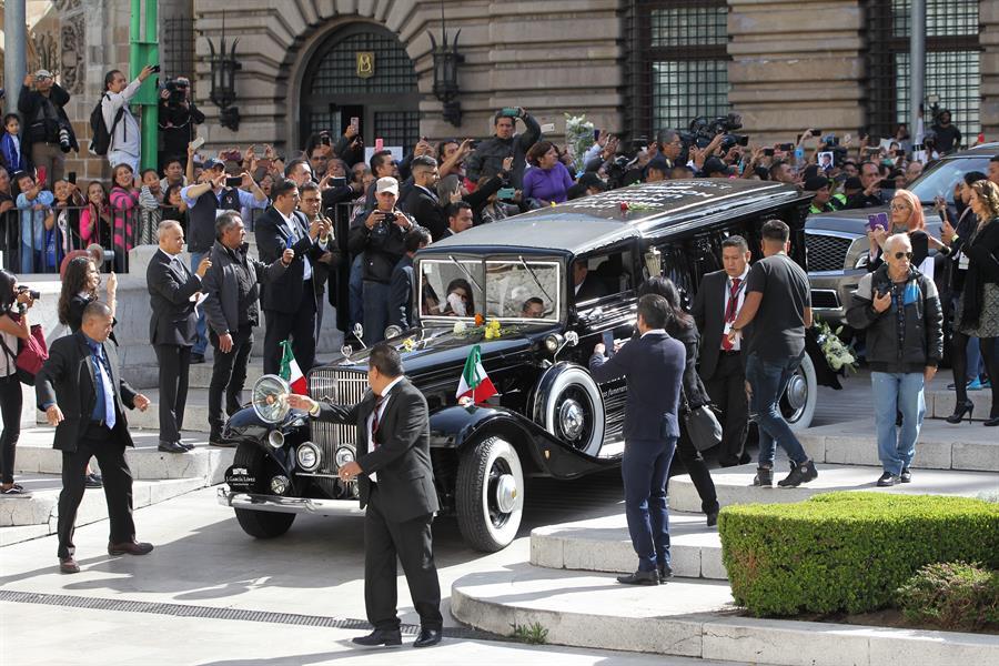 Minutos después arrancó un cortejo fúnebre que recorrió, escoltado por fuerzas de seguridad, importantes avenidas de la Ciudad de México hasta llegar al recinto cultural más importante de México, ubicado en el Centro Histórico de la capital metrópoli.