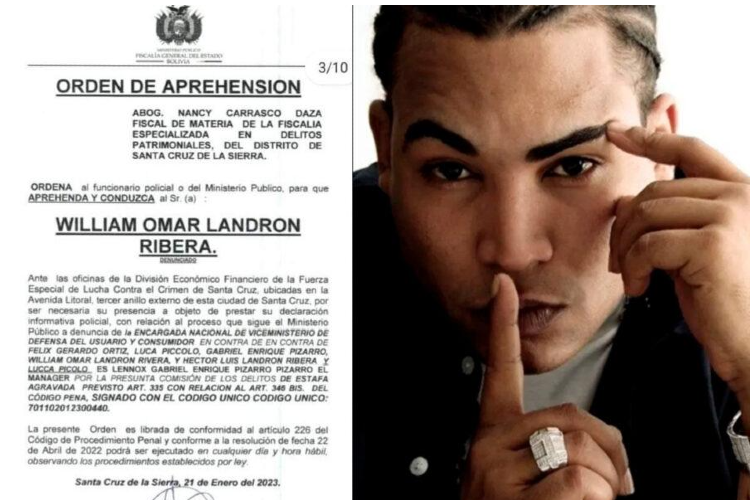 La Fiscalía de Santa Cruz emitió una orden de aprehensión en contra del cantante de reguetón puertorriqueño William Omar Landrón Ribera, mejor conocido como Don Omar, para que rinda declaración dentro de un caso, por la presunta estafa agravada tras suspender sus conciertos ante dificultades para arribar al país en los pasados días.