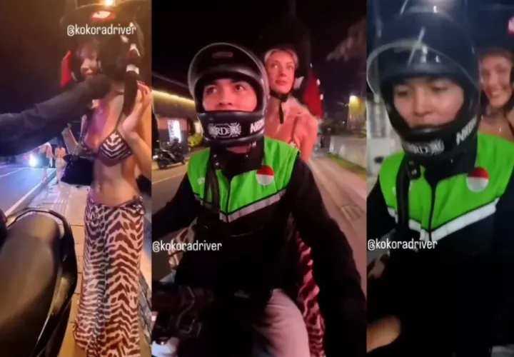 El video fue compartido por el creador de contenido Kokoradriver, quien ofrece este tipo de servicio en Bali y es conocido por grabar los recorridos de sus pasajeros utilizando cascos decorados con llamativos peluches.