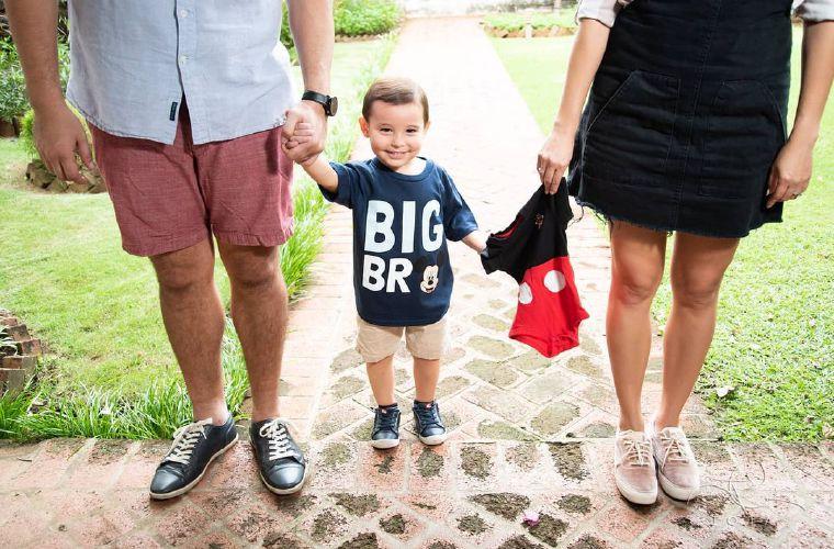 Sin tantos bombos ni platillos, y muchos menos rodeos, pero sí con una fotografía especial, en la que ella y su esposo, el también presentador deportivo David Sakata, solo salen de la cintura hacía abajo y su pequeño con una linda sonrisa y un suéter en el que se lee “Big Bro”, con la cabeza de Micky, sosteniendo un vestido de bebé, que también agarra Massiel, reveló la noticia en su cuenta de Instagram. “Pronto seremos party of y baby Bean Big Bro”.