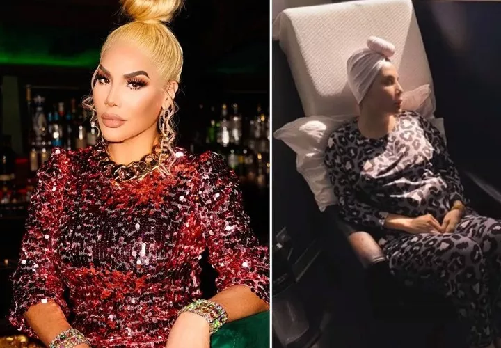 En las fotos se le ve con un turbante en la cabeza y pijama mientras está sentada en su habitación de hospital. Otras imágenes la muestran con su torso descubierto y algunas partes de su piel cerca a su seno de color morado.