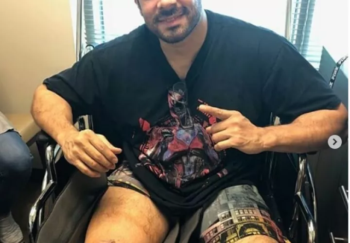 El cantante subió una foto de la herida que quedó en su pierna derecha y claramente se ve una cicatriz de más de 15 puntos. A pesar de eso, Rivera luce su mejor cara y solo espera recuperarse para volver a los escenarios.