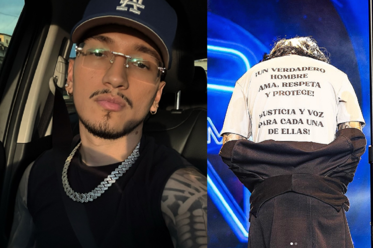 "¡Un verdadero hombre ama, respeta y protege! ¡Justicia y voz para cada una de ellas!", detalló el famoso en una playera que mostró frente al público.