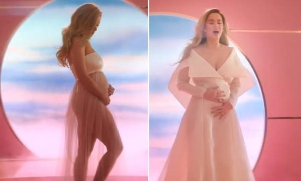Junto a su pareja Orlando Bloom con quien mantiene una relación sentimental desde hace cuatro años, la diva del pop, de 35 años, sera madre por primera vez, una buena nueva que también ha anunciado al final del videoclip cuando aparece vestida con un traje largo de color blanco presumiendo de barriguita.