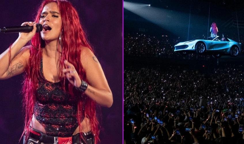 La "Bichota" voló en un Ferrari en pleno concierto; cantó el Makinón