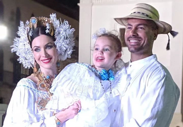En esta ocasión decidió usar el traje típico de la mujer panameña, la pollera. Dean Kelly Jr. su esposo también se lució con su vestuario y la pequeña Maya no se quedó atrás.