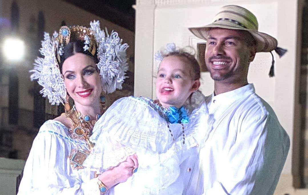 En esta ocasión decidió usar el traje típico de la mujer panameña, la pollera. Dean Kelly Jr. su esposo también se lució con su vestuario y la pequeña Maya no se quedó atrás.