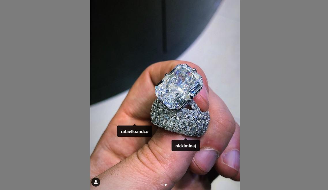 En las imágenes puede verse la sortija de la rapera trinitense, con un gran diamante central de 17 quilates e incrustaciones de otros más pequeños de claridad VVS2, considerados de alta calidad.