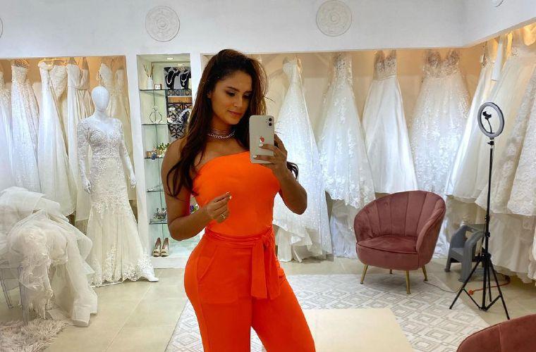 "Un día muy especial, probándome mi vestido de novia, disfrutando la energía del 2-2-22, no hay palabras para describir la felicidad que siento", expresó la famosa en su red social Instagram.