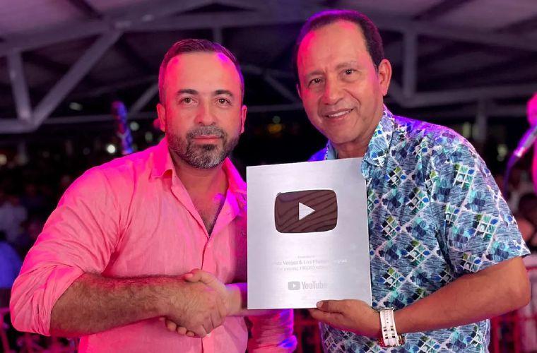 Enhorabuena. El acordeonista Nenito Vargas y Los Plumas Negras están de fiesta, pues este fin de semana recibieron su placa de YouTube tras llegar a los 100 mil suscriptores en su canal.