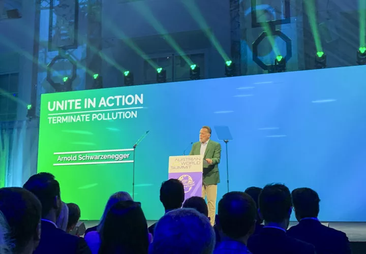 Schwarzenegger, de 77 años, es cofundador y anfitrión de la AWS, un evento que reúne anualmente en Viena a políticos y científicos de más de 80 países para buscar soluciones que mitiguen el calentamiento de la Tierra.