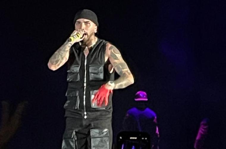 Coreaban cuando él lo pedía, todos los temas himnos de su disco anterior en donde Dímelo Flow colaboró. Pero el momento cumbre de la noche llegó cuando dijo que tenía un invitado muy especial: Sech. Con Carlos Morales, nombre de pila del panameño, interpretó el remix de "911", "La playa", y Sech cantó "Sal y perrea".