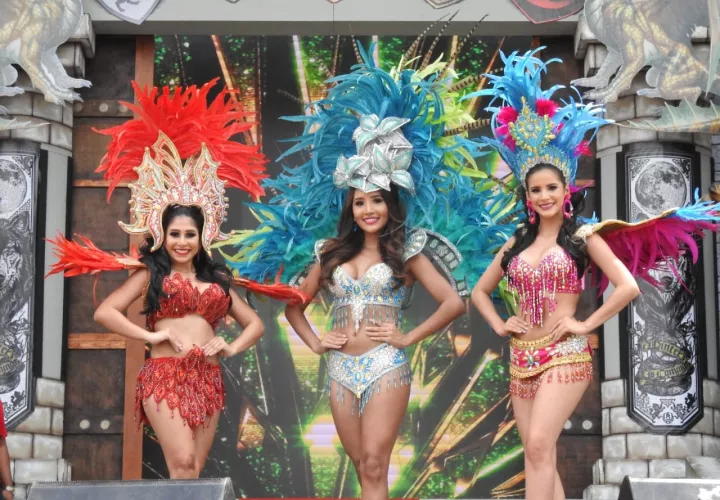 Tirando besitos Valerie Falcón, reina este año del carnaval “Panamá: un país en fiesta”, junto a sus princesas sus princesas Fianeth Corro, y Andrea Guevara, pusieron al público a saltar con las comparsas.
