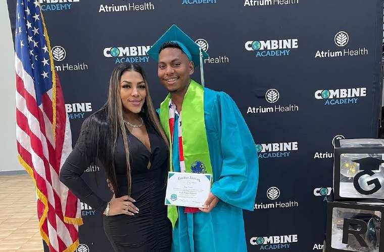 Con el pecho hinchado, de puro orgullo, está la “Máxima de los salones de belleza”, Mussetta Castañeda, al ver a su hijo mayo cumplir una de sus metas, culminar sus estudios secundarios, la "high school" en Estados Unidos.