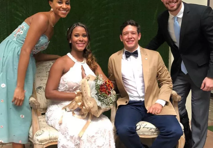Facundo Kroeck y Grace Clunie celebraron con todos sus amigos.