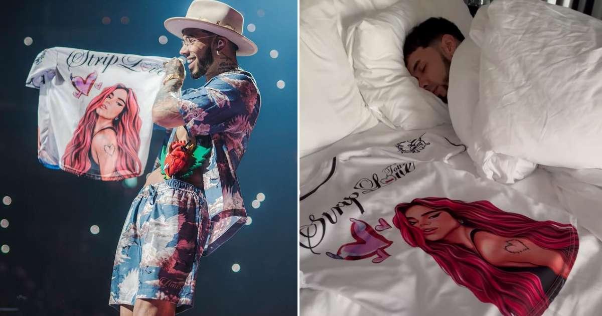 El cantante Anuel AA sigue mandándole mensajes de amor a su ex Karol G y esta vez publicó un video durmiendo al lado de una camiseta de la cantante colombiana.
