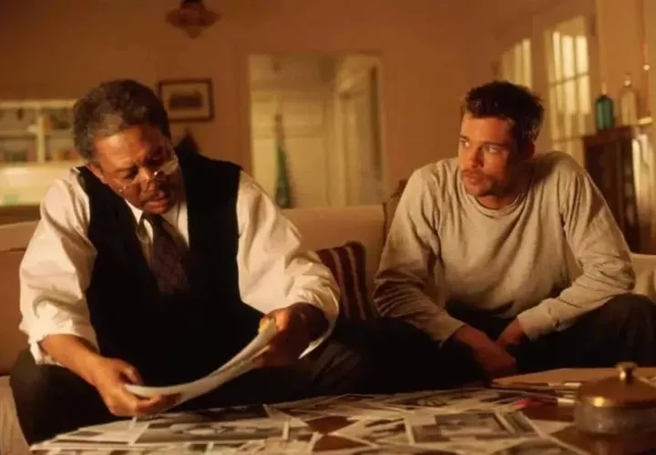 En la presentación de los personajes, Fincher nos detalla cada uno de sus personajes (William Somerset/Morgan Freeman, David Mills/Brad Pitt) con los tiros de camara.