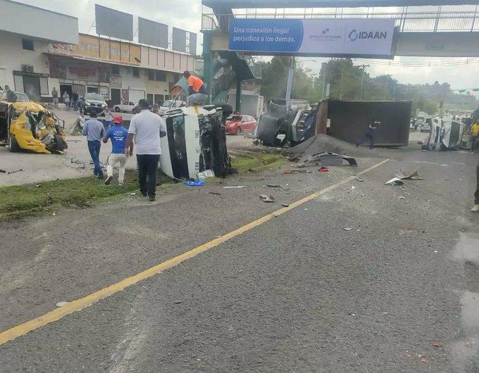 Panamá- Unas 10 personas aproximadamente resultaron lesionadas hoy, lunes, tras una colisión de un vehículo articulado contra varios autos en la vía Transístmica, a la altura de la entrada de Ciudad Bolívar.