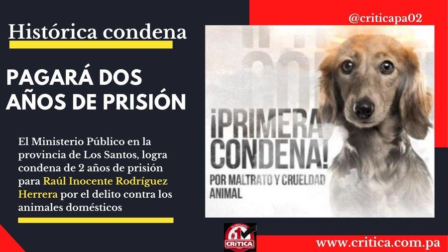 Panamá- Raúl Inocente Rodríguez Herrera fue condenado a dos años de prisión por el delito contra los animales domésticos en un juicio oral en el Ministerio Público de Los Santos.