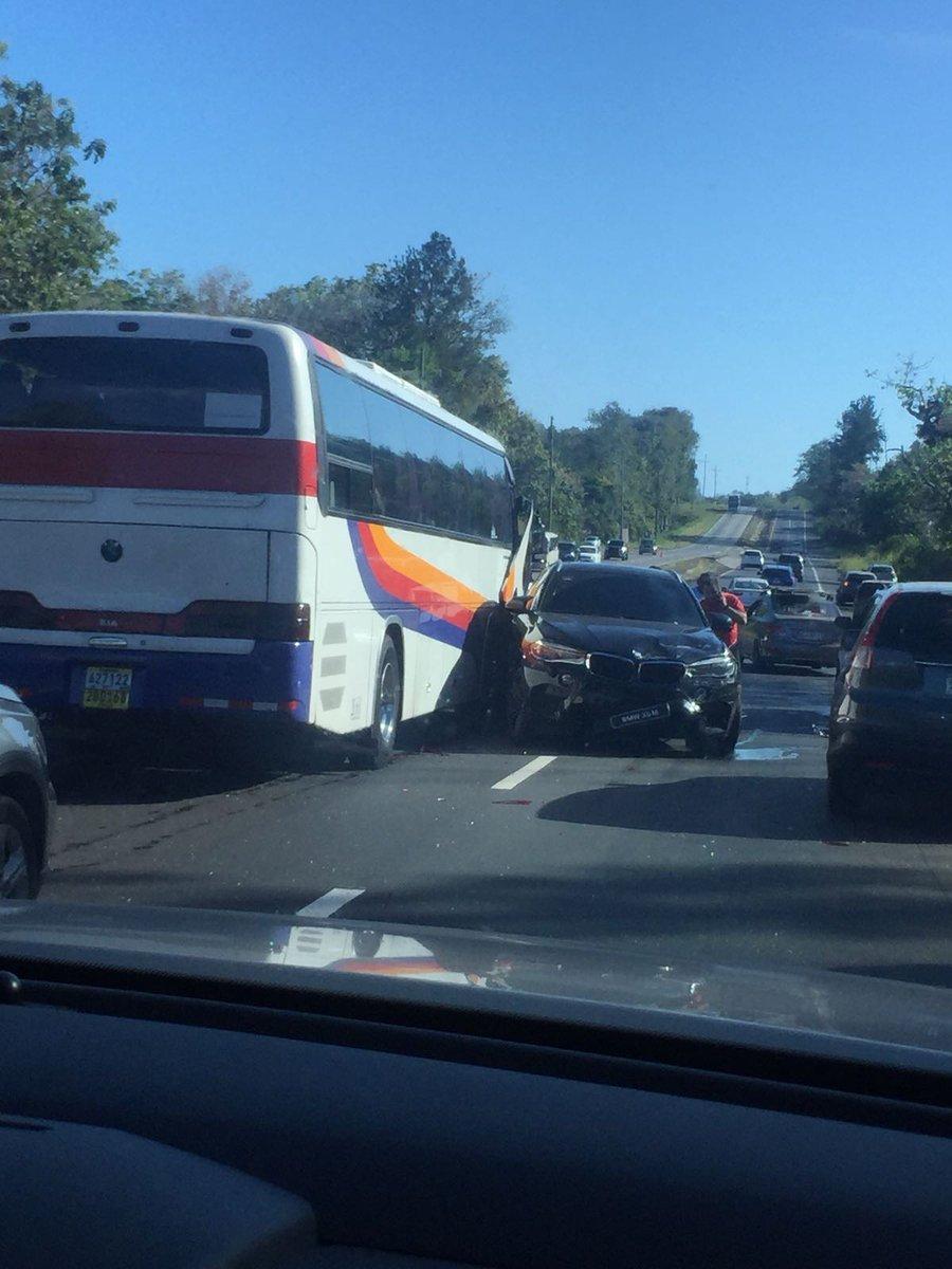 En este accidente se vieron involucrados un transporte colectivo de pasajeros, un auto sedán, un vehículo pick up.